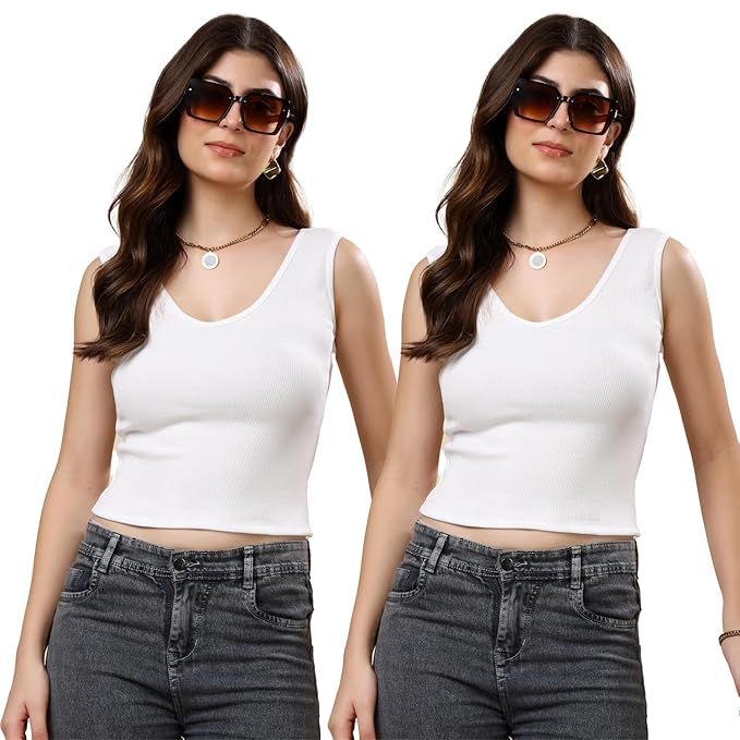 KEX Women’s & Girls Cotton Tank Top | V-Neck Sleeveless Innerwear or Layering Top | Soft, Breathable Stretchable Fabric | Casual, Gym Comfort |
